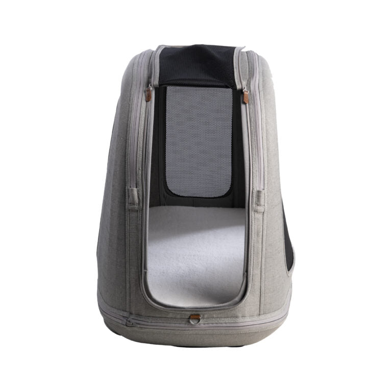 Crispin's interior is soft, richly padded and airy . Mesh panels all around ensure optimal air circulation and a view outside, which significantly reduces stress during travel. The high interior space allows the dog to change positions and travel comfortably even on longer routes.
