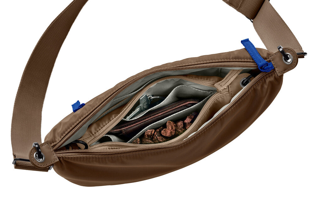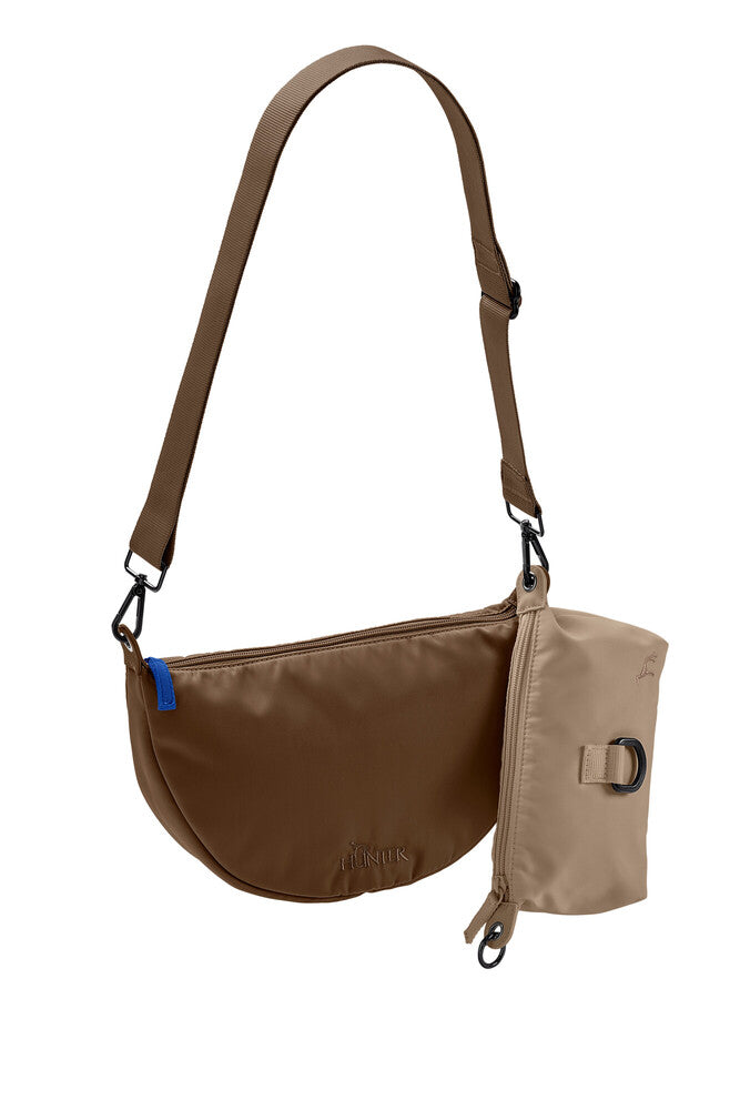 Štýlová a praktická crossbody taška CHARLOTTE nielen na venčenie! Pamlskovník/ľadvinka je neprehliadnuteľný doplnok každej prechádzky so psom. Tento elegantný kúsok v tvare polmesiaca je vyrobený z odolného, vodoodpudivého polyesteru a okrem moderného vzhľadu zaujme predovšetkým svojou funkčnosťou. Vďaka premyslenému usporiadaniu úložných priestorov sa rýchlo stane nepostrádateľnou súčasťou vašej každodennej výbavy.
